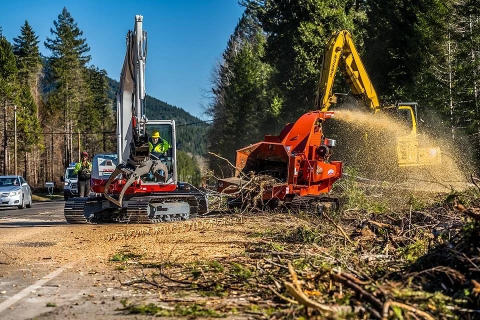 We have access to three skid steers and a variety of attachments that enable us to clean up slash, feed our chipper, and move logs.